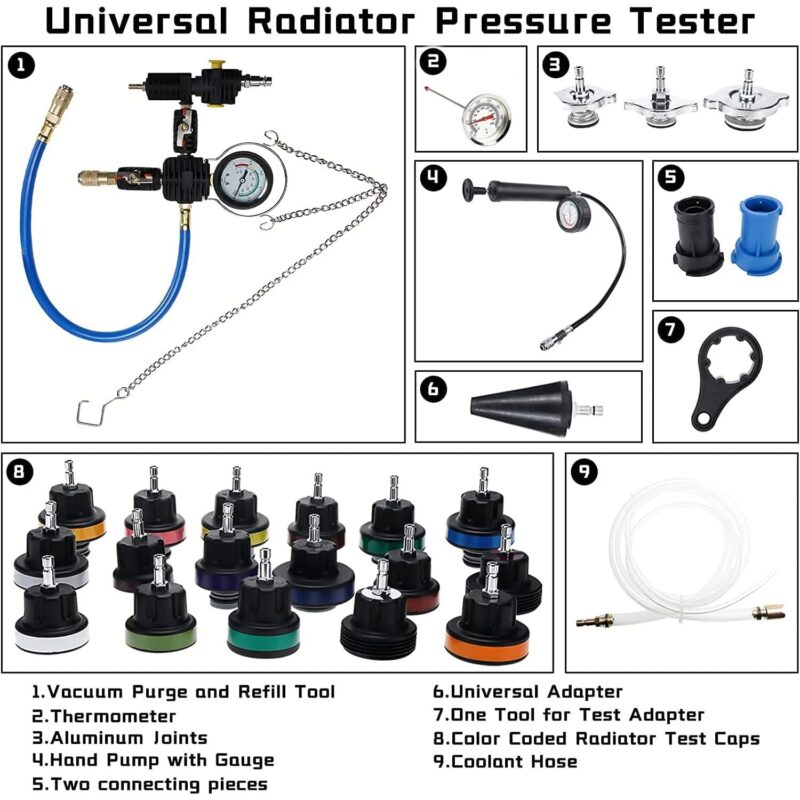 Комплект за проверка на налягането на радиатора и охладителната система 28 части HAWEKКомплект за измерване налягането в радиатора и охладителната...Вижте пълното описание...