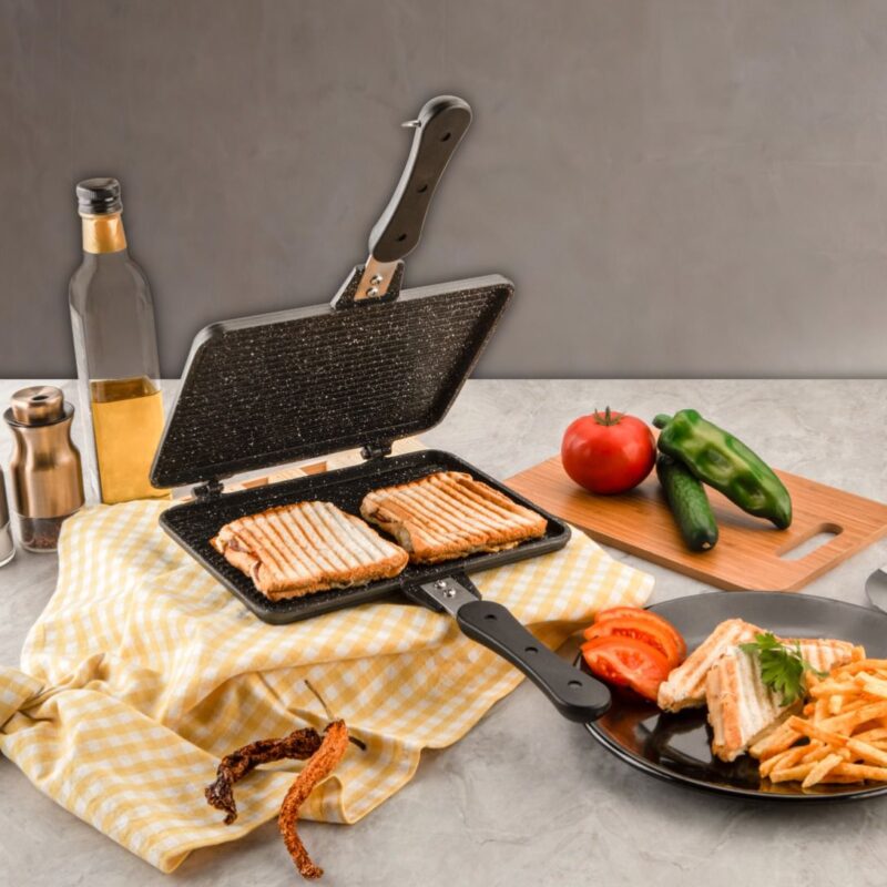 28,00 €(54.76 лв.)Двоен грил тиган , TASHAN GRANIT Характеристика:-Размер на чинията 20х26см-Дължина с дръжката 42см- Дебелина на плочата -4 мм.- Тостерите и сандвичите...Вижте пълното описание...