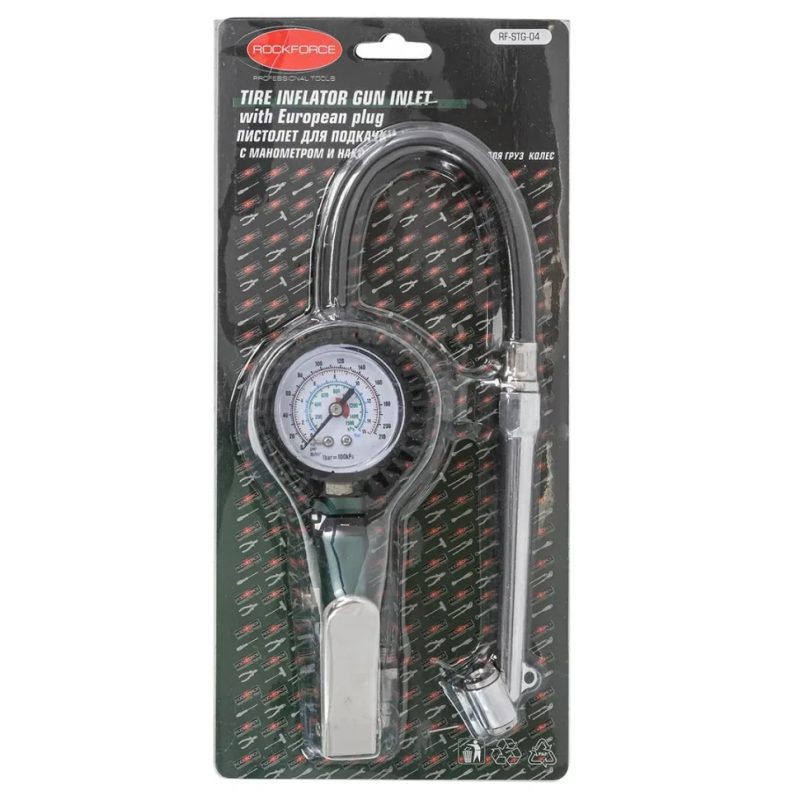 18,00 €(35.20 лв.)Пистолет за помпане на гуми с манометър и накрайник ROCKFORCE RF-STG-04 Пистолетът за помпане на гуми с манометър е...Вижте пълното описание...
