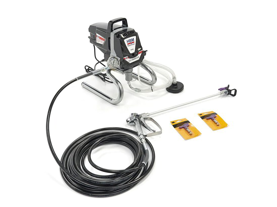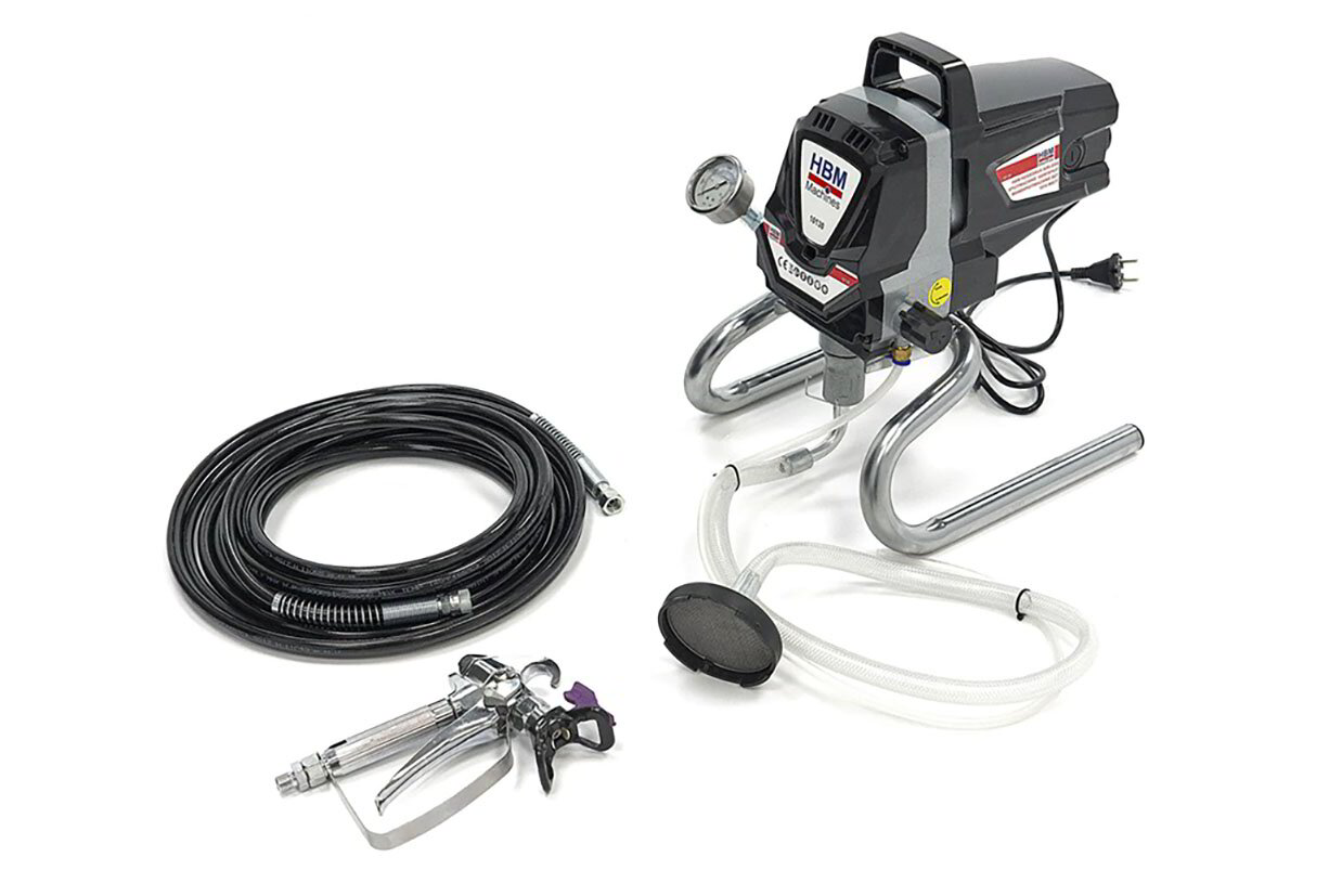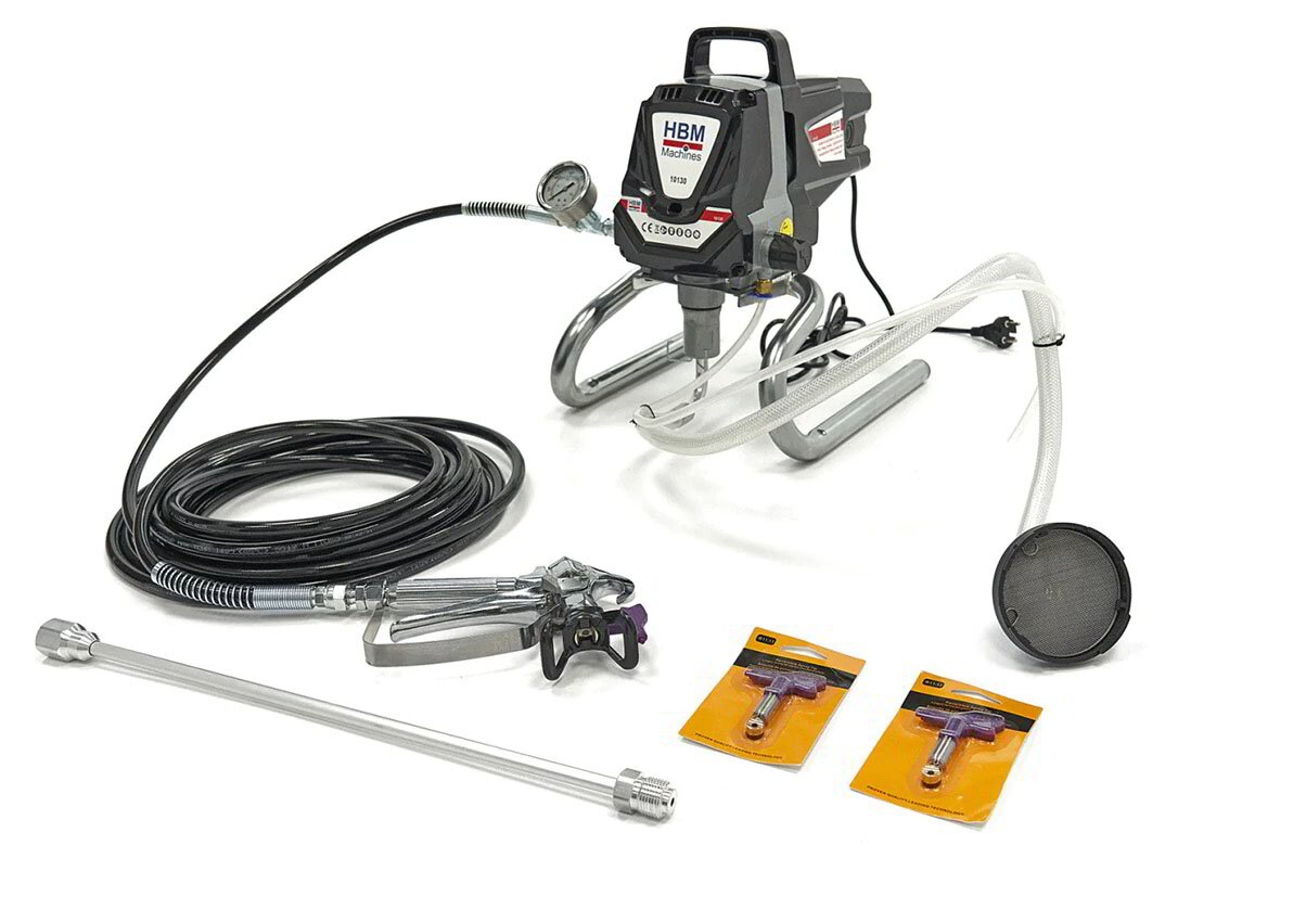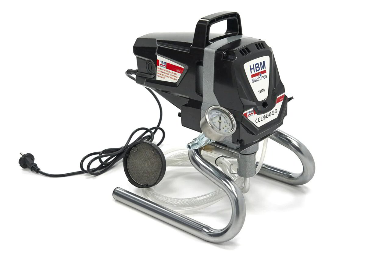 Този пистолет с помпа изпомпва всички видове стенни бои под много високо налягане през 10 метра дълъг маркуч за високо налягане към пистолета за пръскане. Дюзата на този пистолет може да се завърти, така че да може да се използва както хоризонтално, така и вертикално. В тази дюза могат да се поставят различни дюзи с различна ширина на пръскане. Тази дюза може дори да бъде насочена (вляво – вдясно), за да пръска труднодостъпни места.