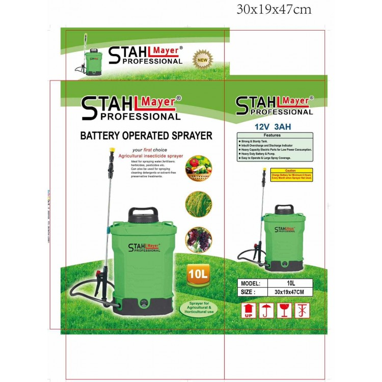 Добре дошли в света на лесното и ефективно градинарство с нашата акумулаторна пръскачка STAHLMAYER от 10 литра! Този изключително удобен и многофункционален инструмент е създаден с оглед на оптимално пръскане на градини, овощни дръвчета и зеленчуци, както и за обеззаразяване на складове и други.