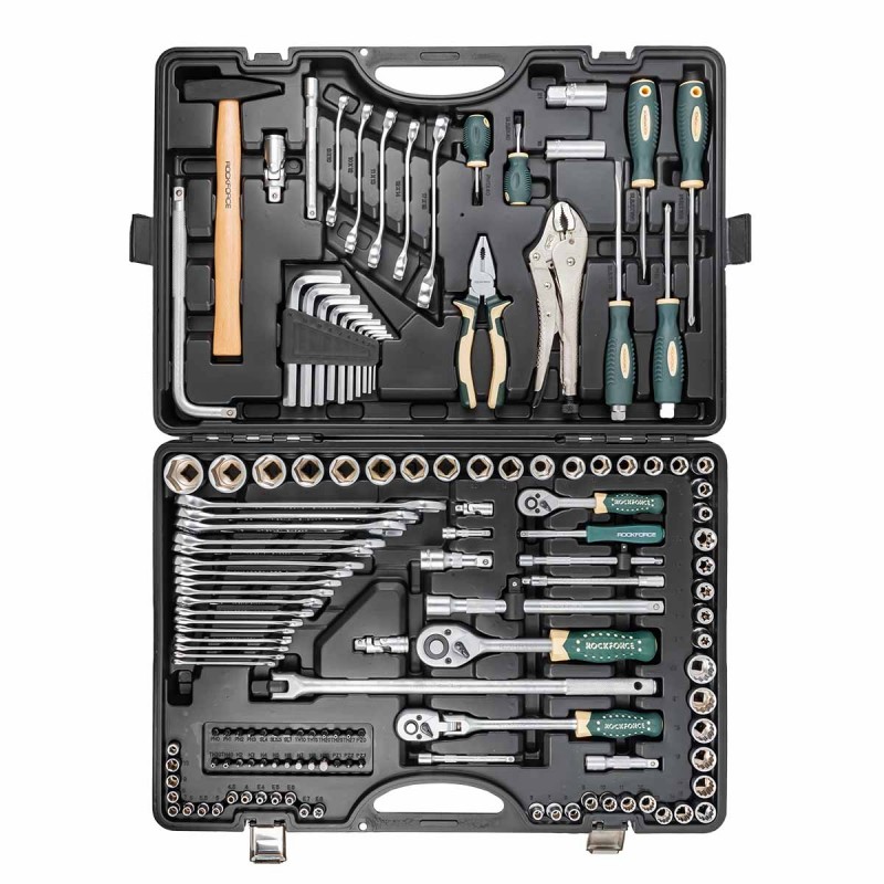 Гедоре 142 части ROCKFORCE   Комплектът инструменти ROCKFORCE RF-41421-5 са изработен от висококласна хром-ванадиева стомана с добавени специални метални смеси за отлични...Вижте пълното описание...