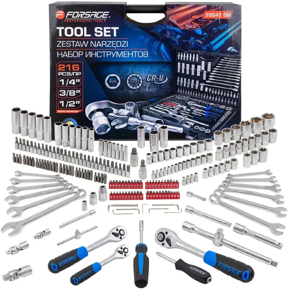 Комплект гедоре 216 части FORSAGE – 1/4″, 3/8″ и 1/2″ F-38841 SM
