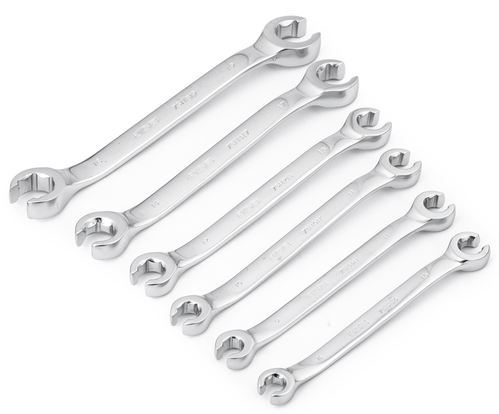 Професионален комплект от 6 висококачествени двустранни ключа, изработени от здрава хром-ванадиева стомана (Cr-V) с устойчиво сатенено покритие. Подходящи за работа със спирачни и хидравлични системи.