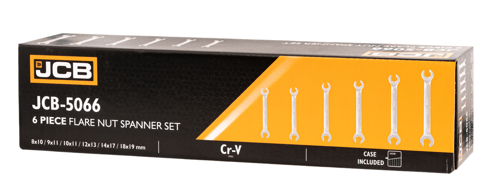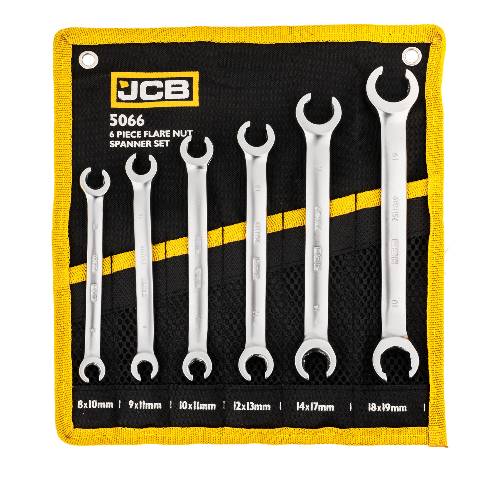 Комплект двустранни рязани ключове за спирачни тръбички – 6 части (8–19 мм) JCB