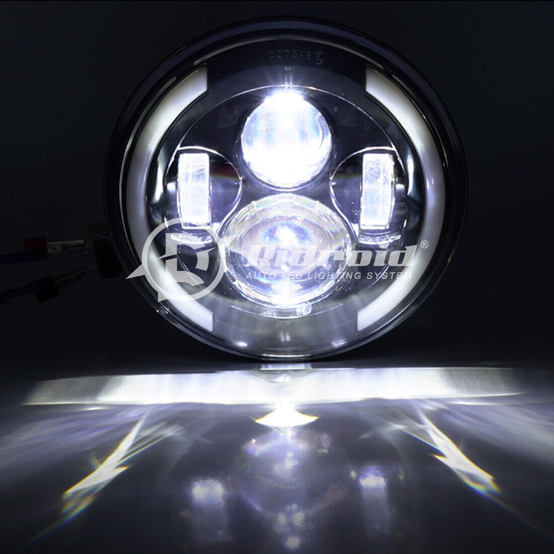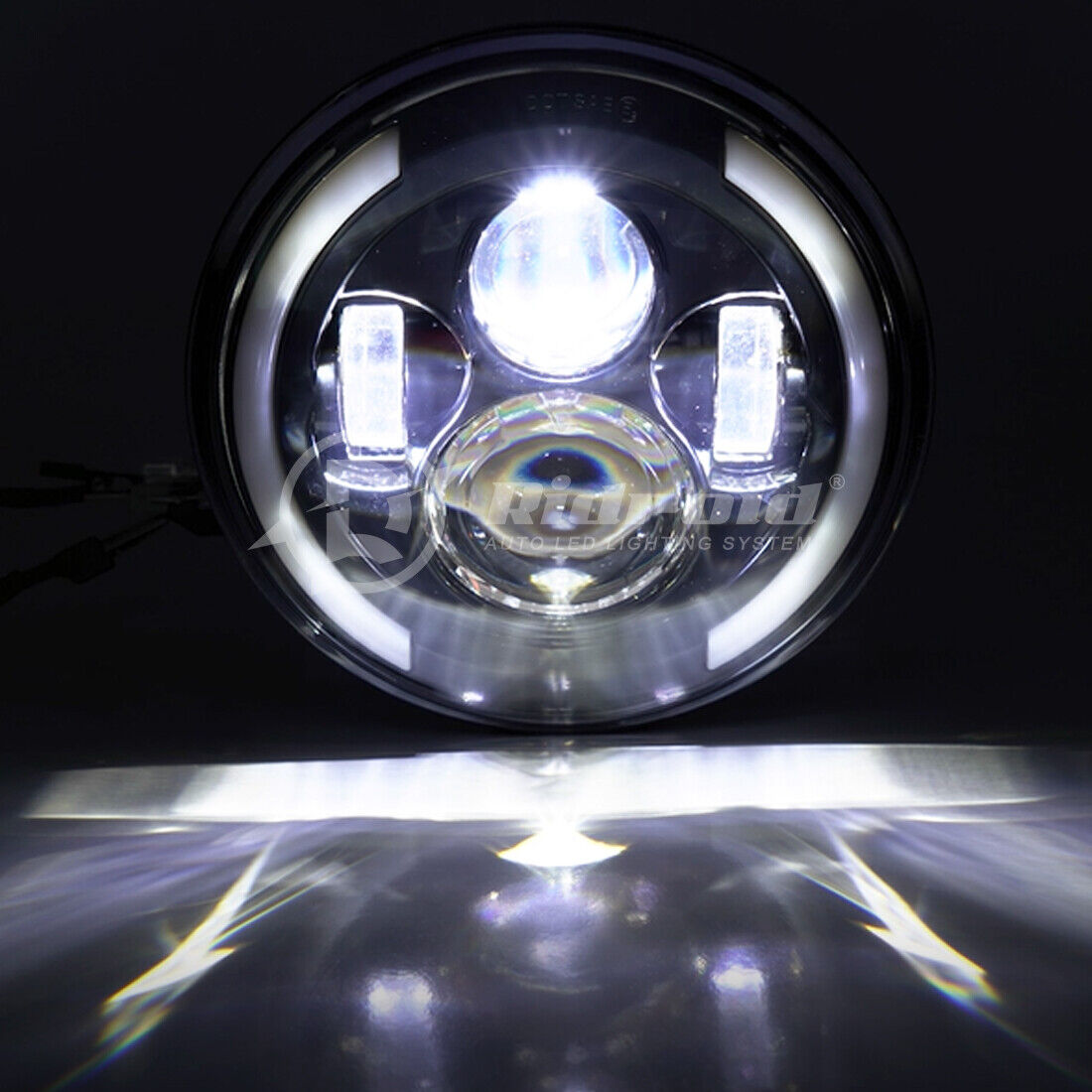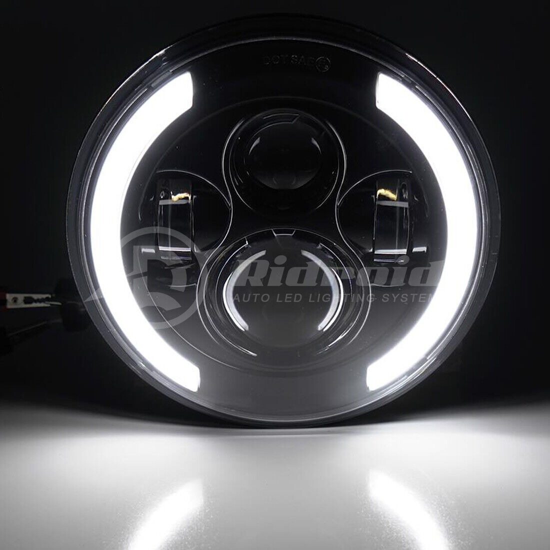 • Комплект Кръгли LED фарове 7″ 70W H4 букса, къси, дълги, дневни и мигач