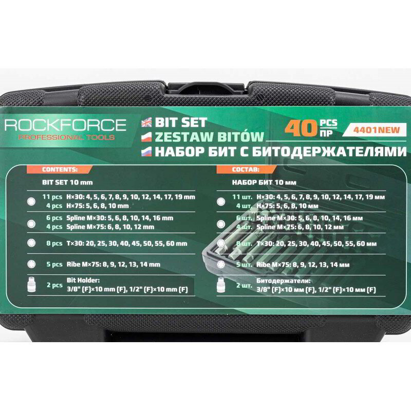 Комплект битове с държачи за битове 40 бр (10mm)(75/30mm: T20-T55,H4-H12,M5-M12) в метална кутия