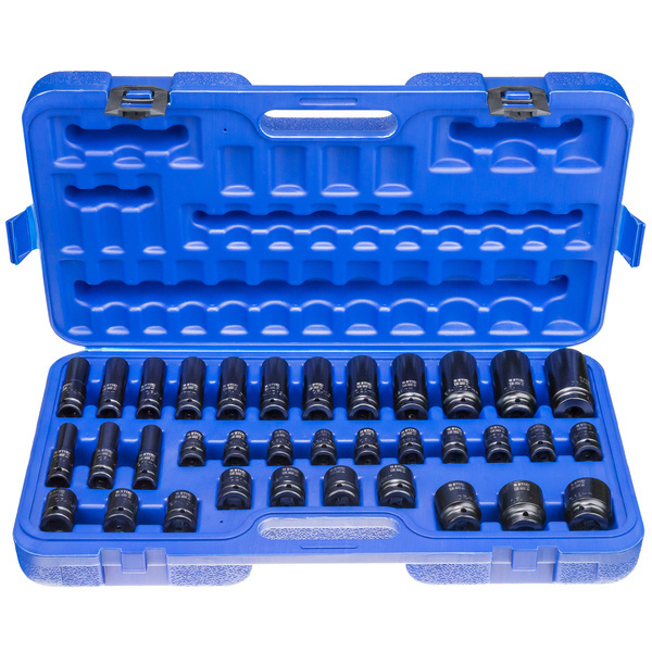 Комплектът STT CR-MO SERIES 10 включва 35 ударни вложки 1/2″, проектирани за работа с пневматични и електрически ударни гайковерти. Вложките са изработени от висококачествен CrMo (хром-молибден) стоманен сплав, което гарантира устойчивост на ударни натоварвания, високи температури и корозия.