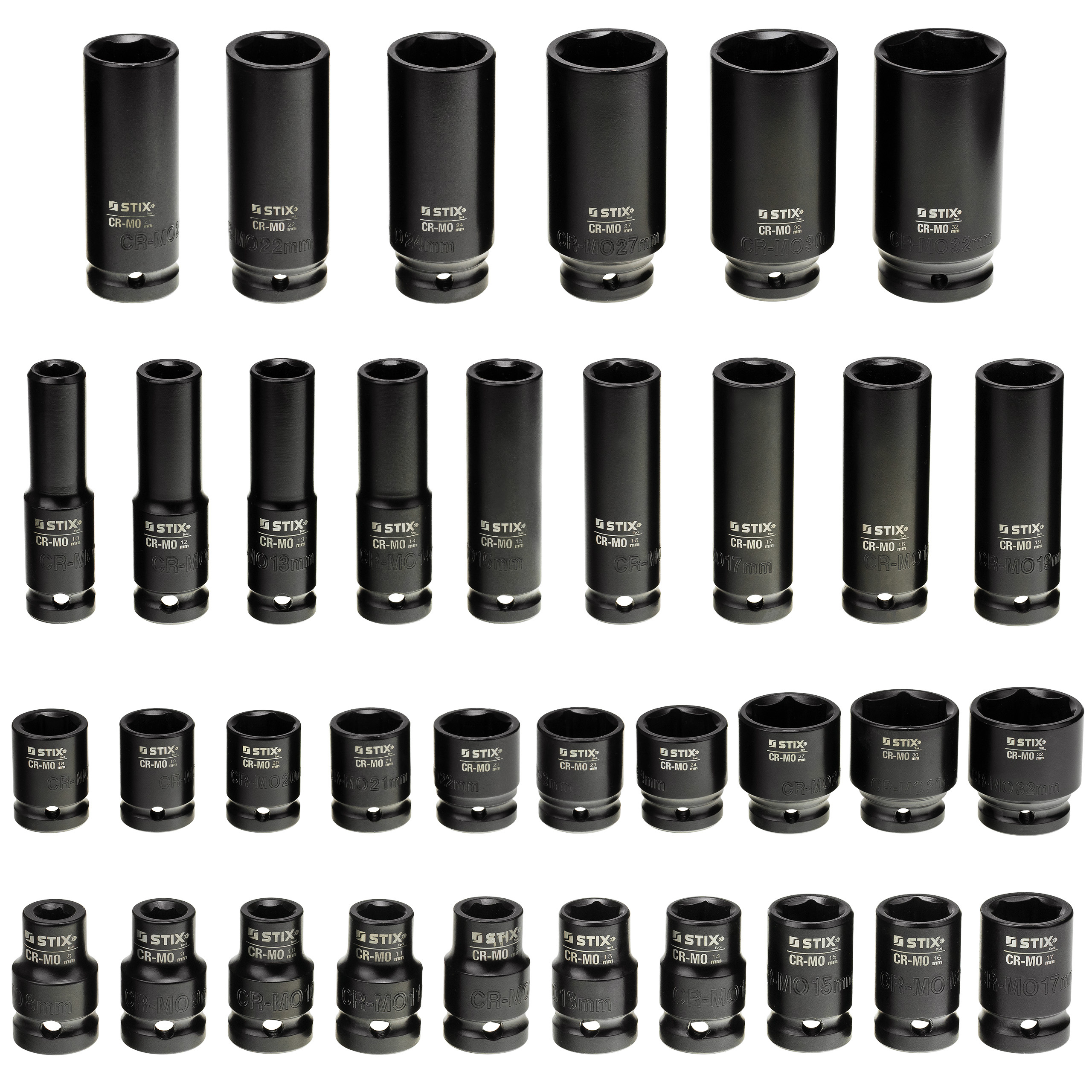 Комплект ударни вложки 1/2″ 35 части, 8-32мм дълги и къси  STIX  – STT CR-MO SERIES 10