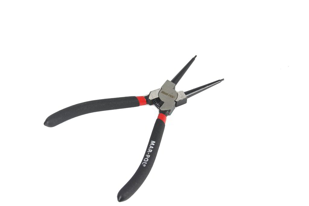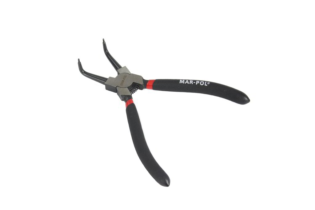 Клещите Mar-Pol се използват за монтаж и демонтаж на закрепващи халки. Има 2 вида защита: вътрешна (разширение вътре в ръкава) и