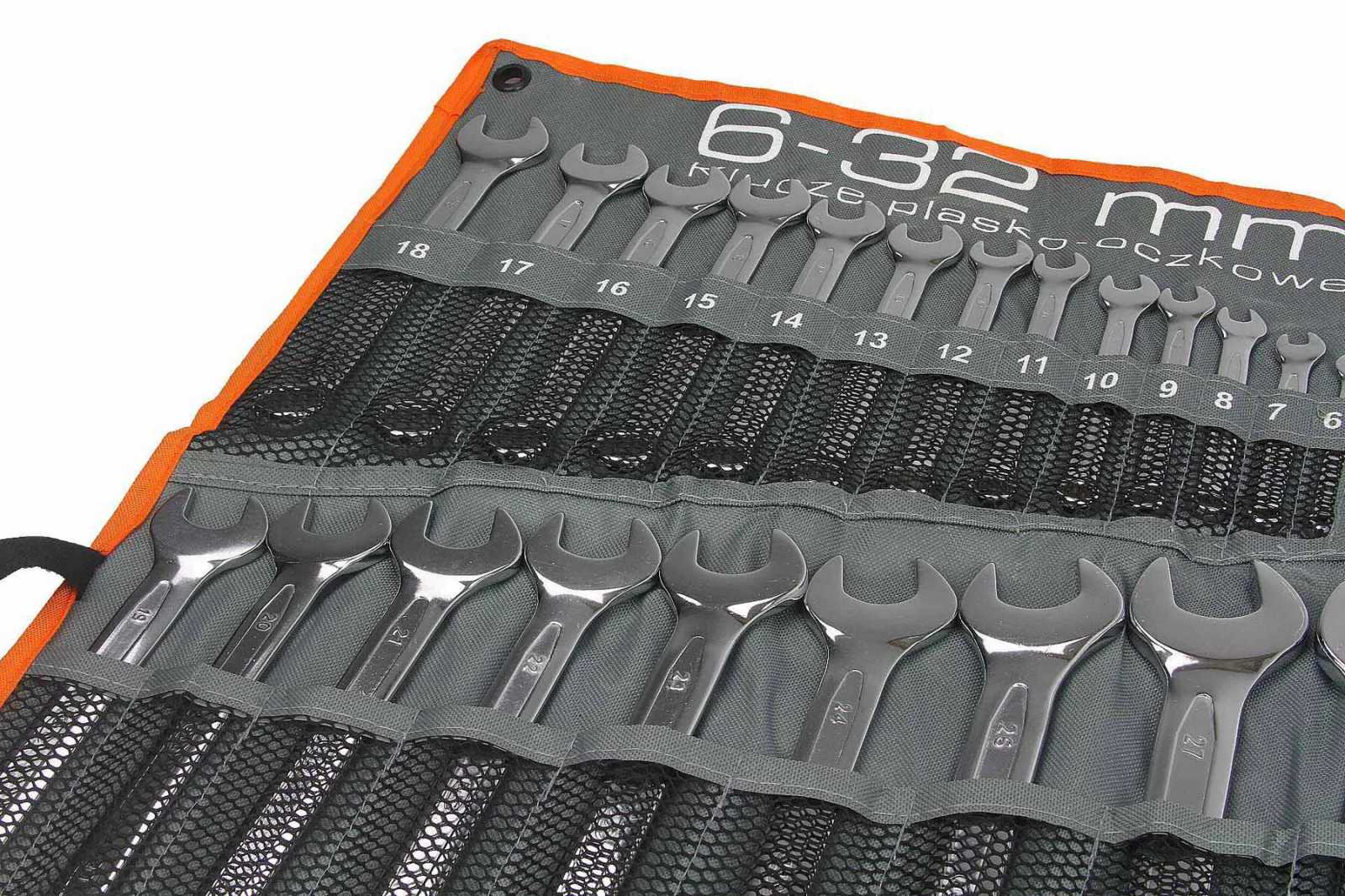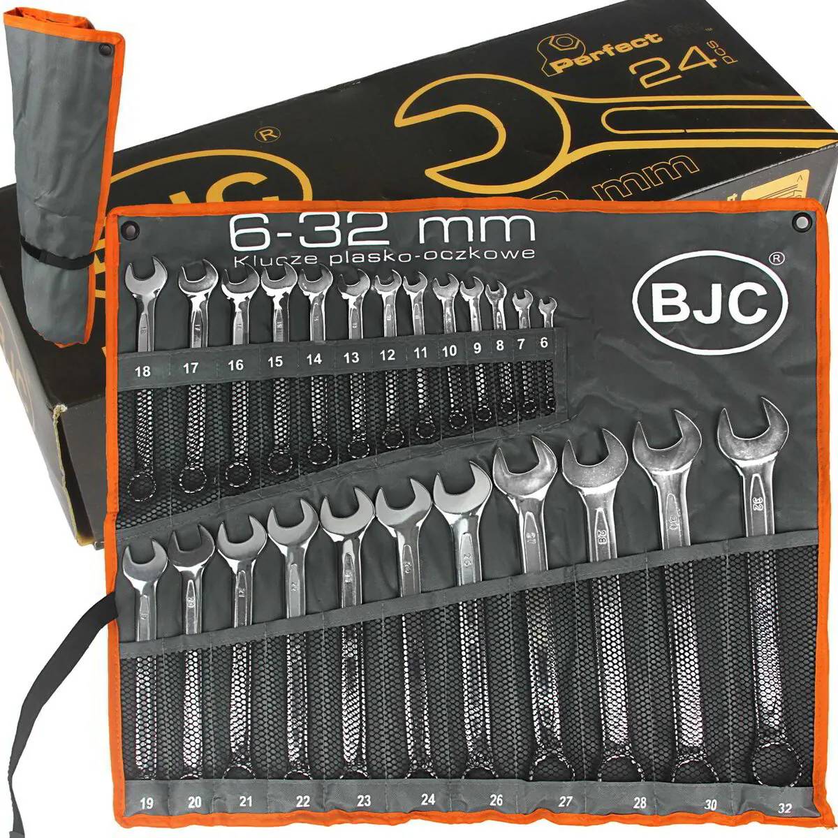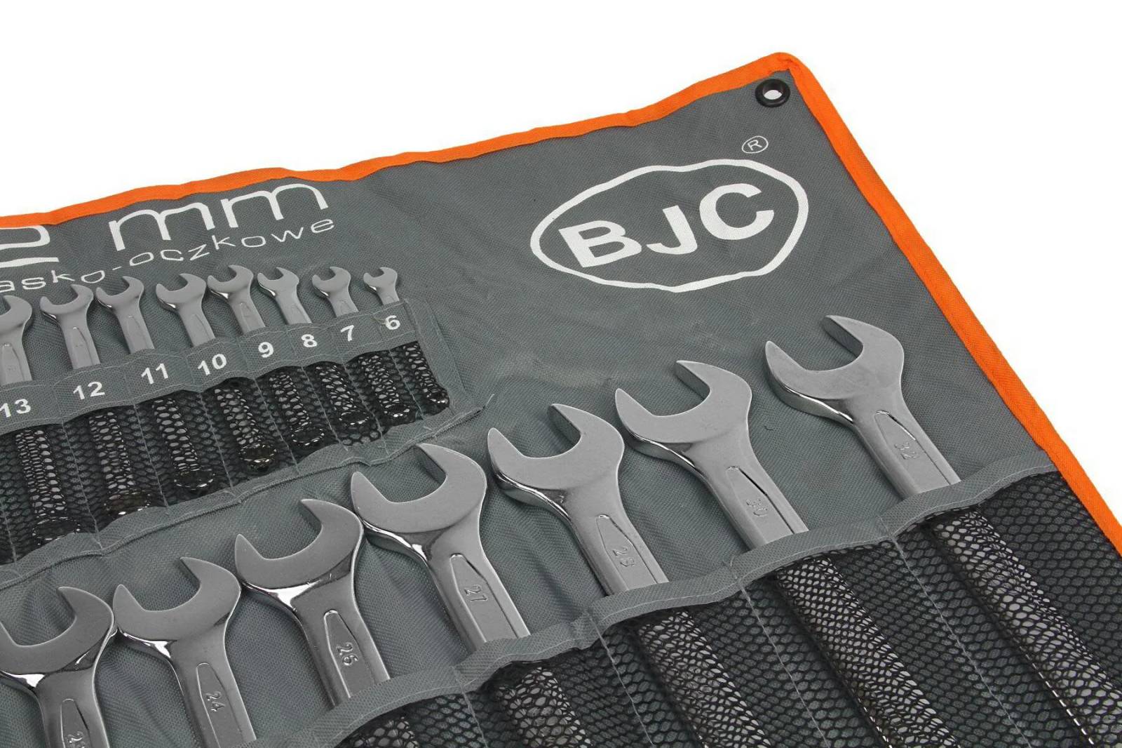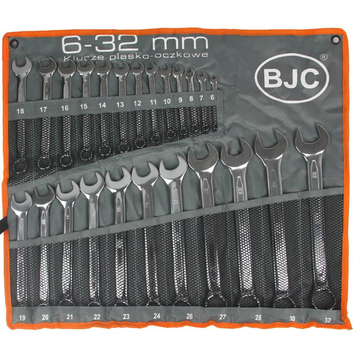 Комплектът комбинирани гаечни ключове BJC включва гаечни ключове в популярни размери, изработени в съответствие със стандарта DIN 3113. Висококачествената хром-ванадиева стомана осигурява дълготрайна издръжливост на гаечните ключове.