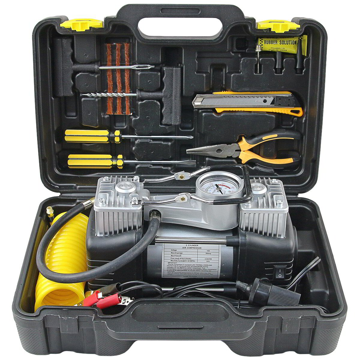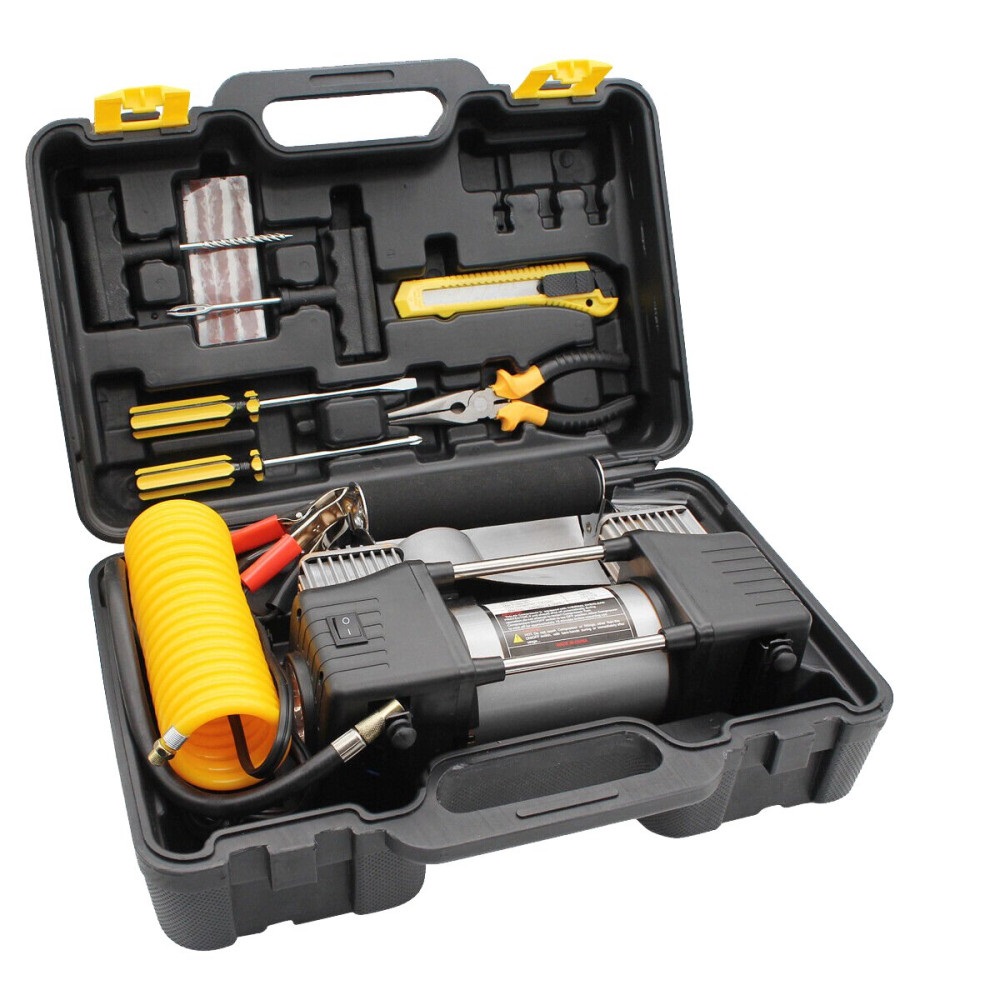 Компресор за гуми с комплект инструменти StahlMayer   ХАРАКТЕРИСТИКИ: Напрежение: 12V / 23А Дебит : 60 л / мин Работна температура:...Вижте пълното описание...