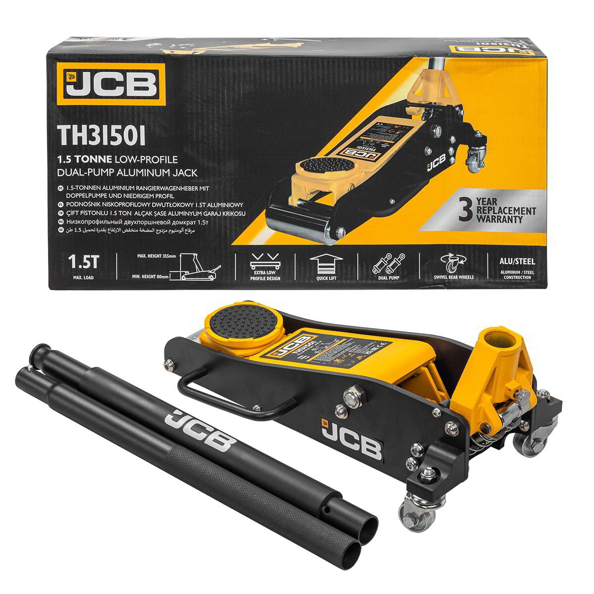 Нископрофилен алуминиев крик тип крокодил 1.5 тона 85 – 355 мм JCB