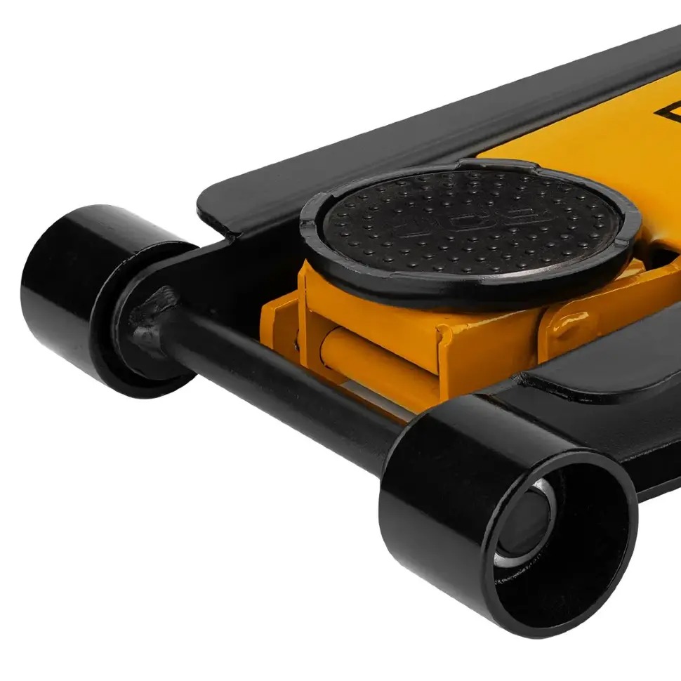 Професионален сервизен крик на марката JCB с товароподемност 4 тона, с две помпи и усилена конструкция. Крикът е снабден с педал за бързо повдигане.
