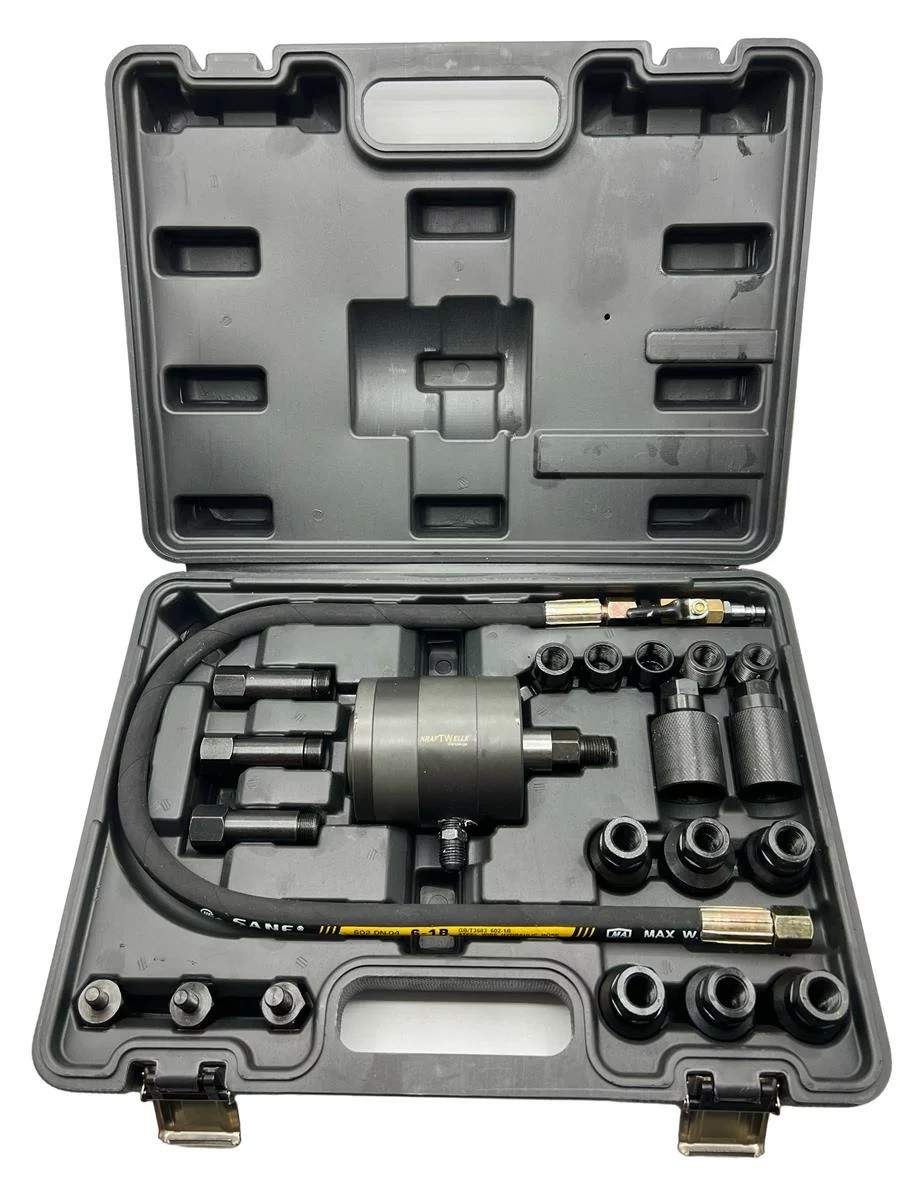 Съдържа пневматичен вибро екстрактор и множество адаптори, съвместими с широка гама дизелови инжектори, монтирани в МПС.