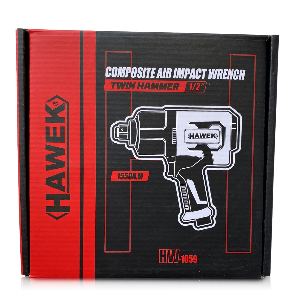 Пневматичен ударен гайковерт HAWEK е с ергономична дръжка и квадрат 1/2″. С максимални обороти без натоварване 8000 об./мин и механизъм TWIN HAMMER . Има подсилен корпус от устойчив композитен материал и е лесен за работа с една ръка.