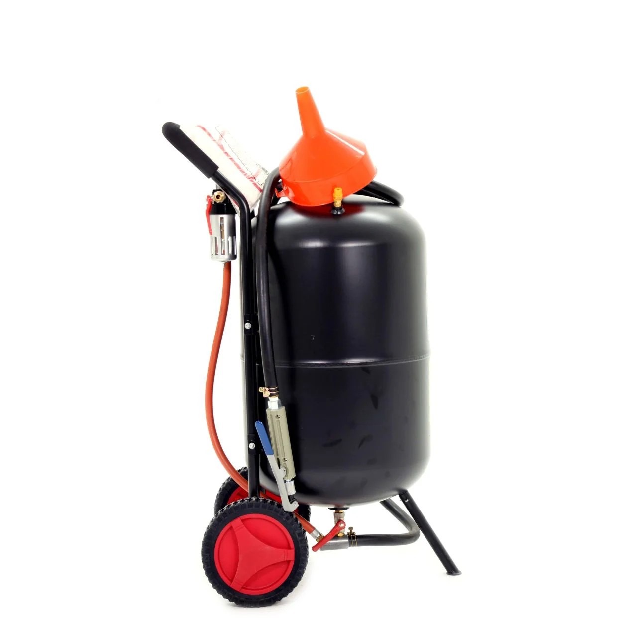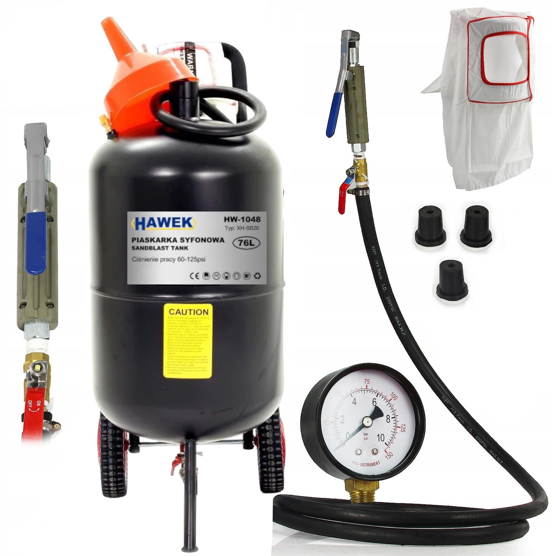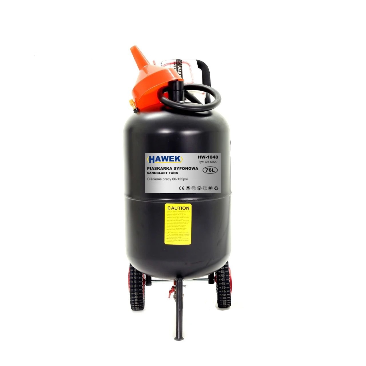Мобилният пясъкоструен апарат на HAWEK HW-1048 е много удобен и подходящ за премахване на боя или ръжда от различни повърхности. Пясъкоструйката е предвидени за транспорт и мобилност като за целта е монтирана на стойка с две гуми. Оборудван с дюзи и пясъкоструен пистолет, спирателен вентил, манометър, маркуч, фуния за пълнене на резервоара и защитна маска с лек плексиглас.