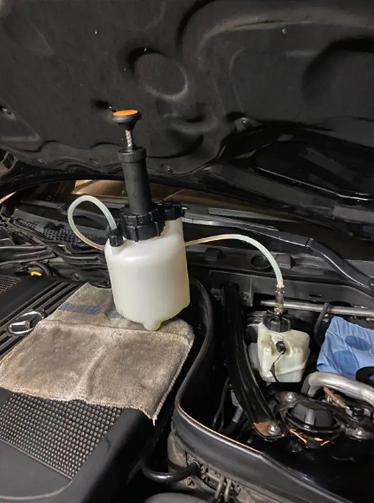 Комплект за смяна на спирачна течност с вместимост на бутилката 3 литра.