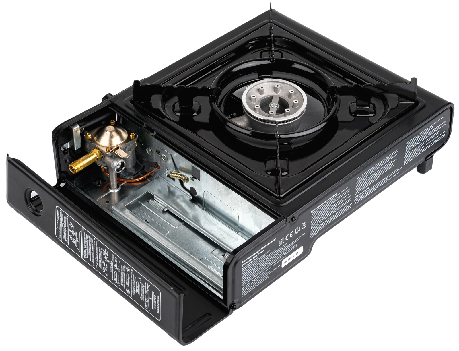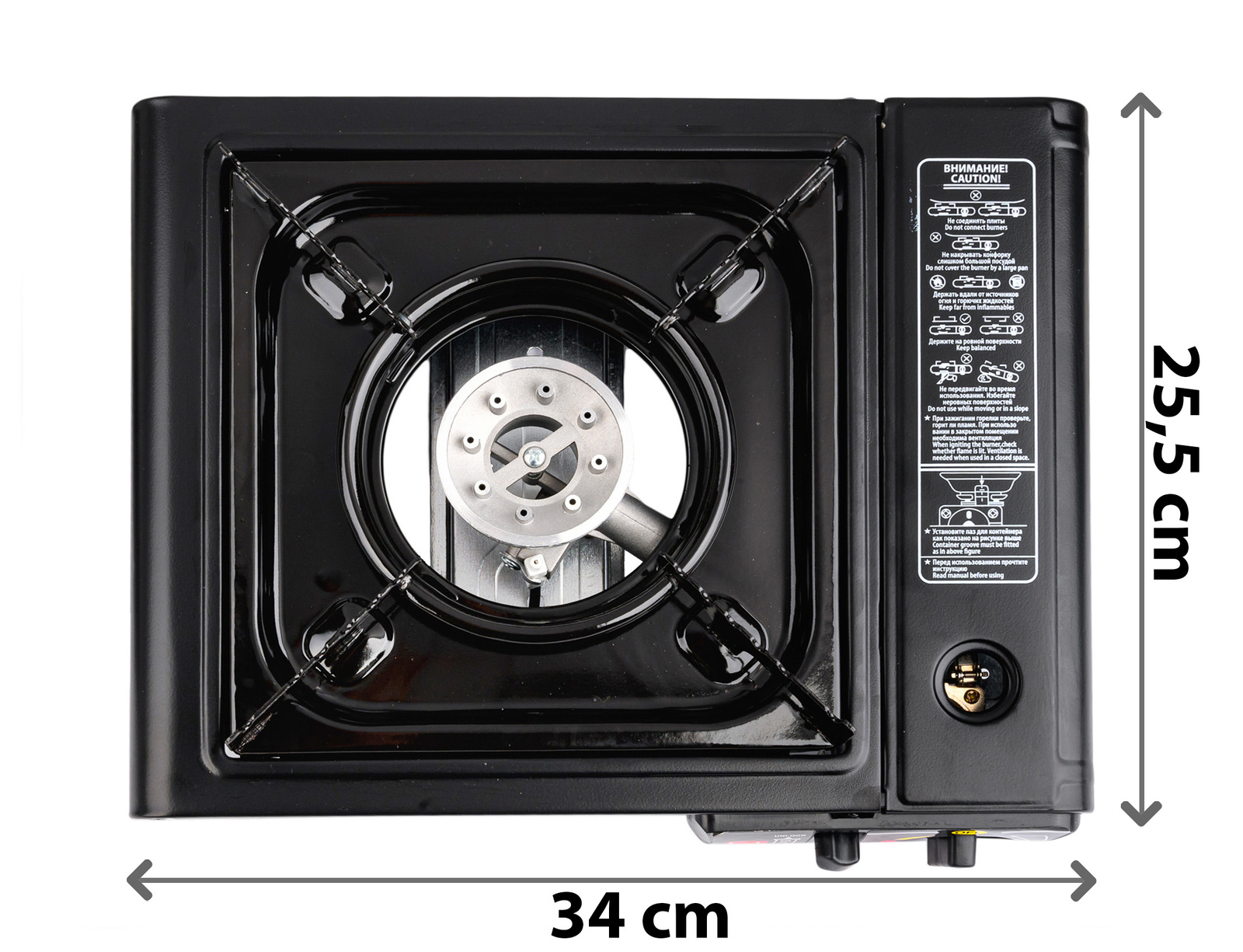Стабилен и лесен за употреба газов котлон с една горелка, създаден за къмпингуващите, който се пренася удобно и навсякъде в своя куфар за съхранение.