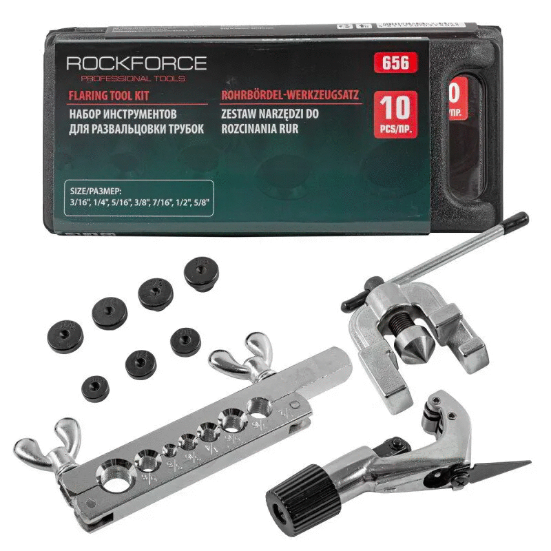 Конусна дъска за ремонт на спирачни тръбички 10 части RockForce КОМПЛЕКТЪТ ВКЛЮЧВА: 7 адаптера за разширяване на тръби и кабели:...Вижте пълното описание...