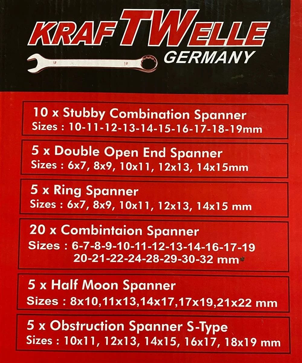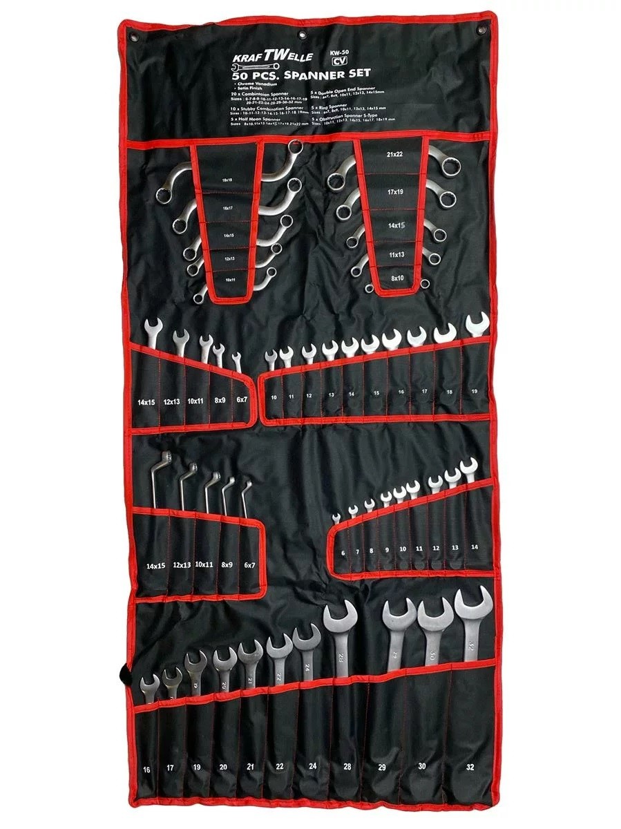 Професионални комбинирани ключове 50 части , изработени от хром ванадиева стомана , марка KraftWelle .
