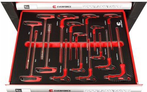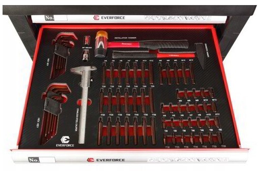 - Висококачествен шкаф за инструменти. Шкафът разполага със 7 практични чекмеджета за инструменти, затворени с ключ.