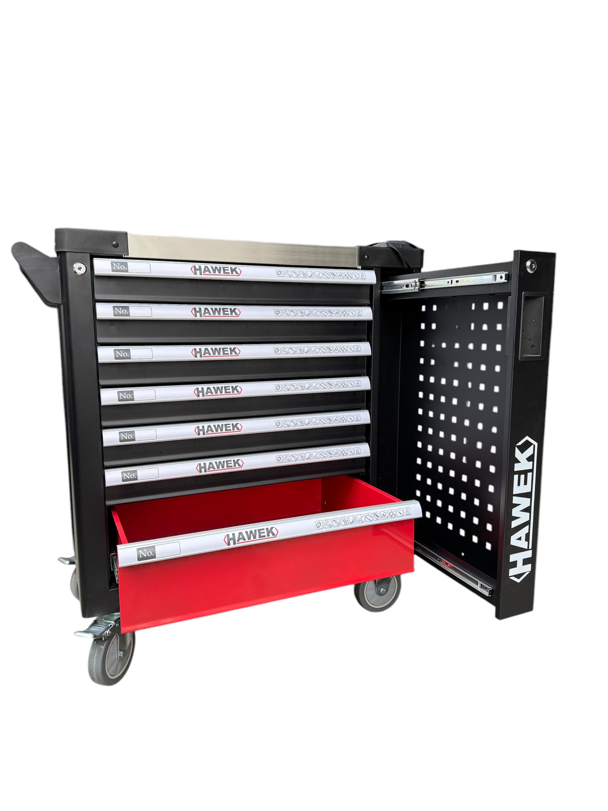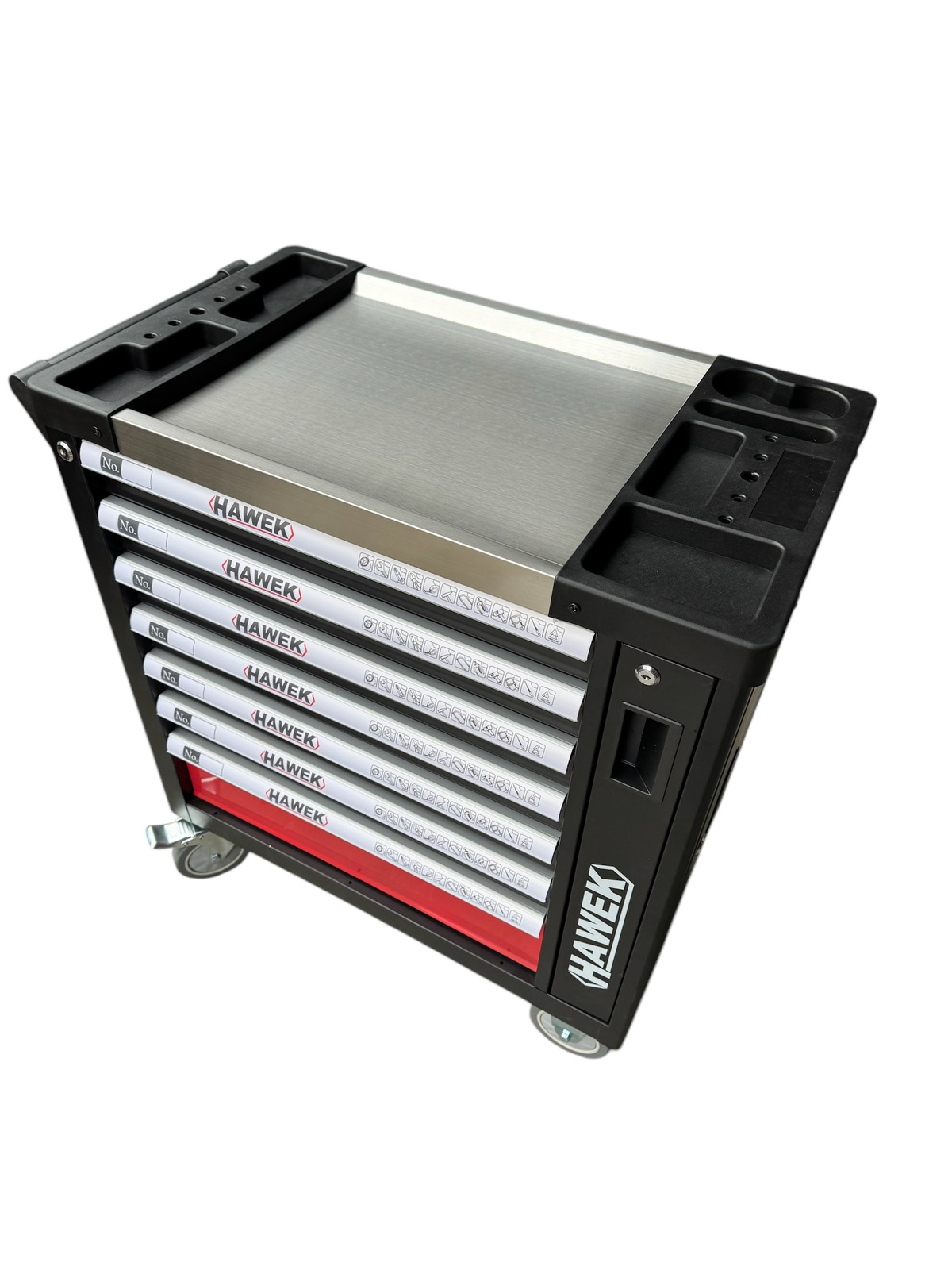 Празен шкаф за инструменти със 7 чекмеджета, метален плот и отделение за закачане на инструменти HAWEK