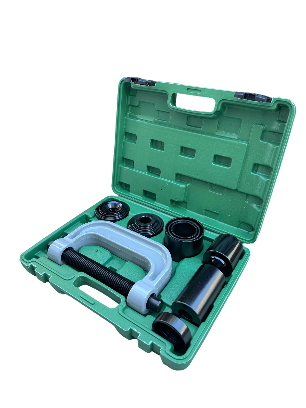 Универсална скоба за монтаж и демонтаж на втулки и шарнири.Съдържание на комплекта:C-образна скоба.Водачи 3 броя - 68мм, 57мм и 45мм...Вижте пълното описание...
