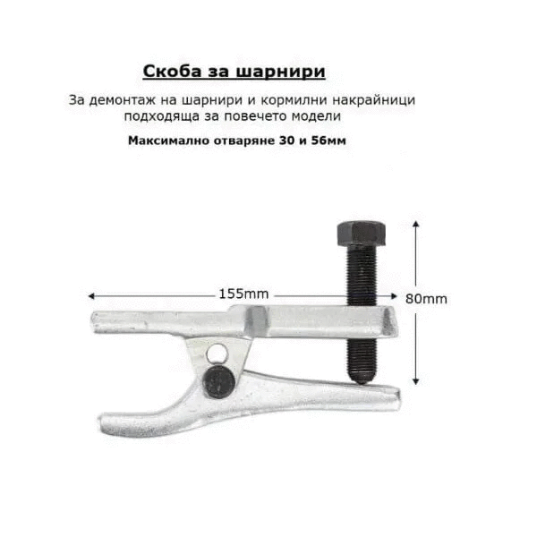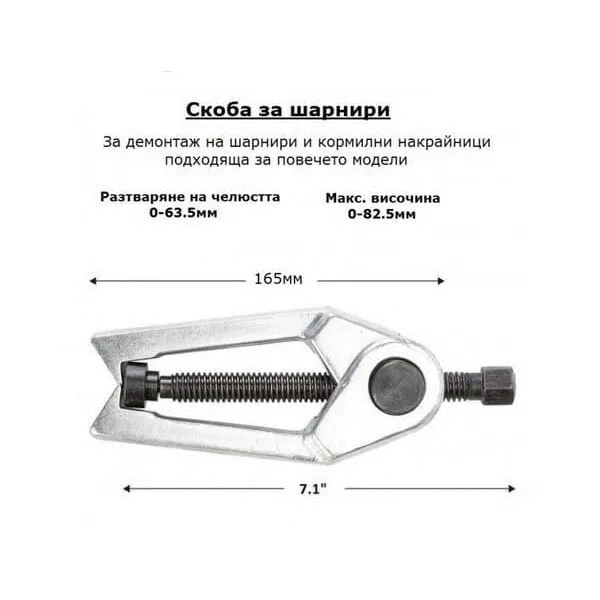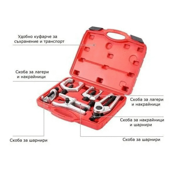Удобен и практичен комплект за демонтаж и монтаж на шарнири, накрайници, втулки и лагери. Той ще улесни свалянето на частите и ще скъси времето за ремонт. Комплектът е подходящ за всички видове автомобили.