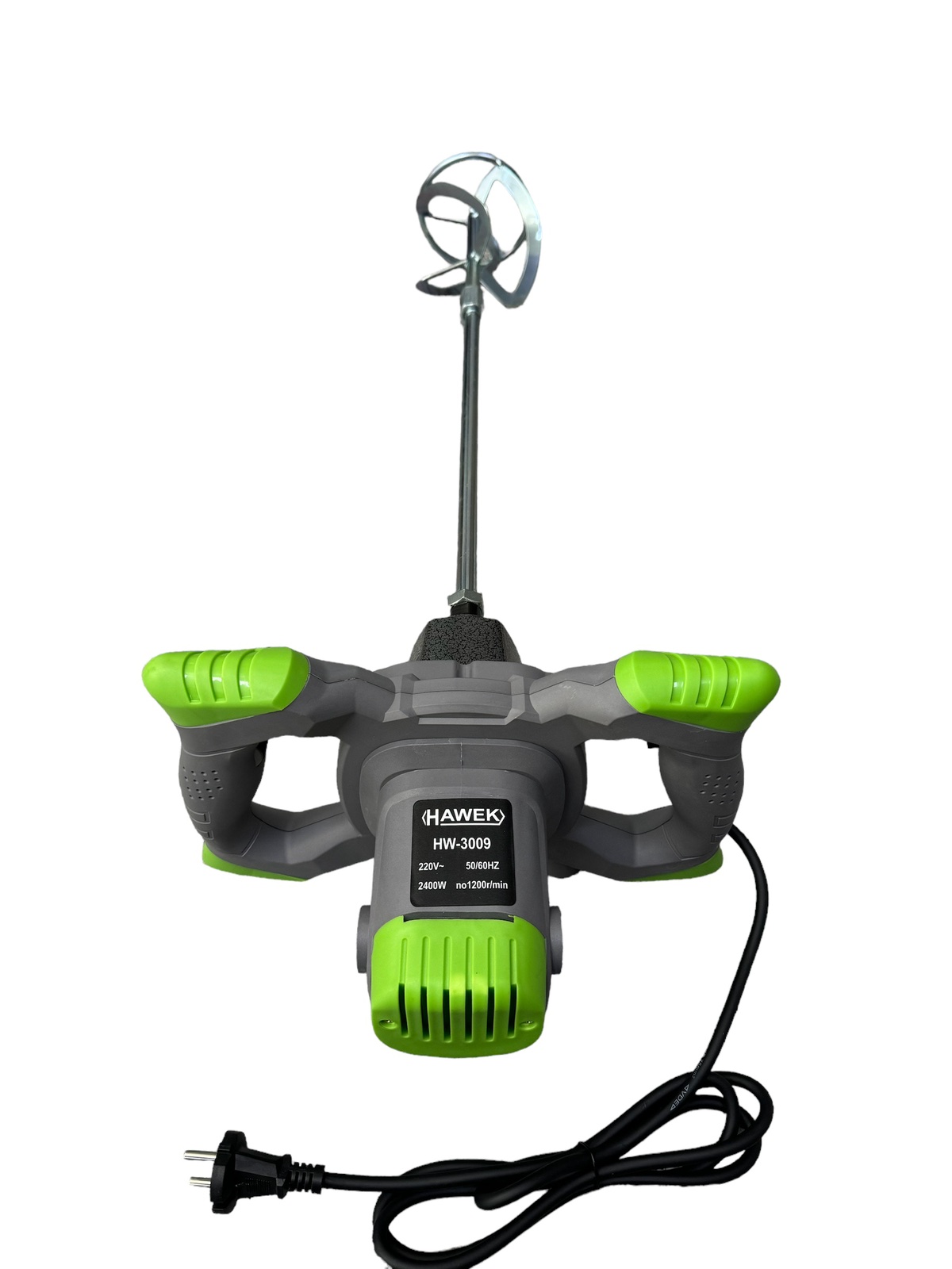 Строителен миксер 2400W HAWEKДвускоростен редуктор, регулатор на оборотите и мощност от 2400WИзцяло метален редуктор  ТЕХНИЧЕСКИ ПАРАМЕТРИ:Захранващо напрежение: 230 – 240 VМощност:...Вижте пълното описание...